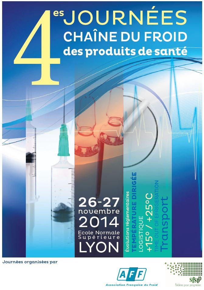 La 4e édition des journées de la chaîne du froid des produits de santé aura lieu à Lyon les 26 et 27 novembre 2014, à l'invitation de la SFSTP (Sté Française des sciences et techniques pharmaceutiques) et de l'AFF (Association Française du Froid).
